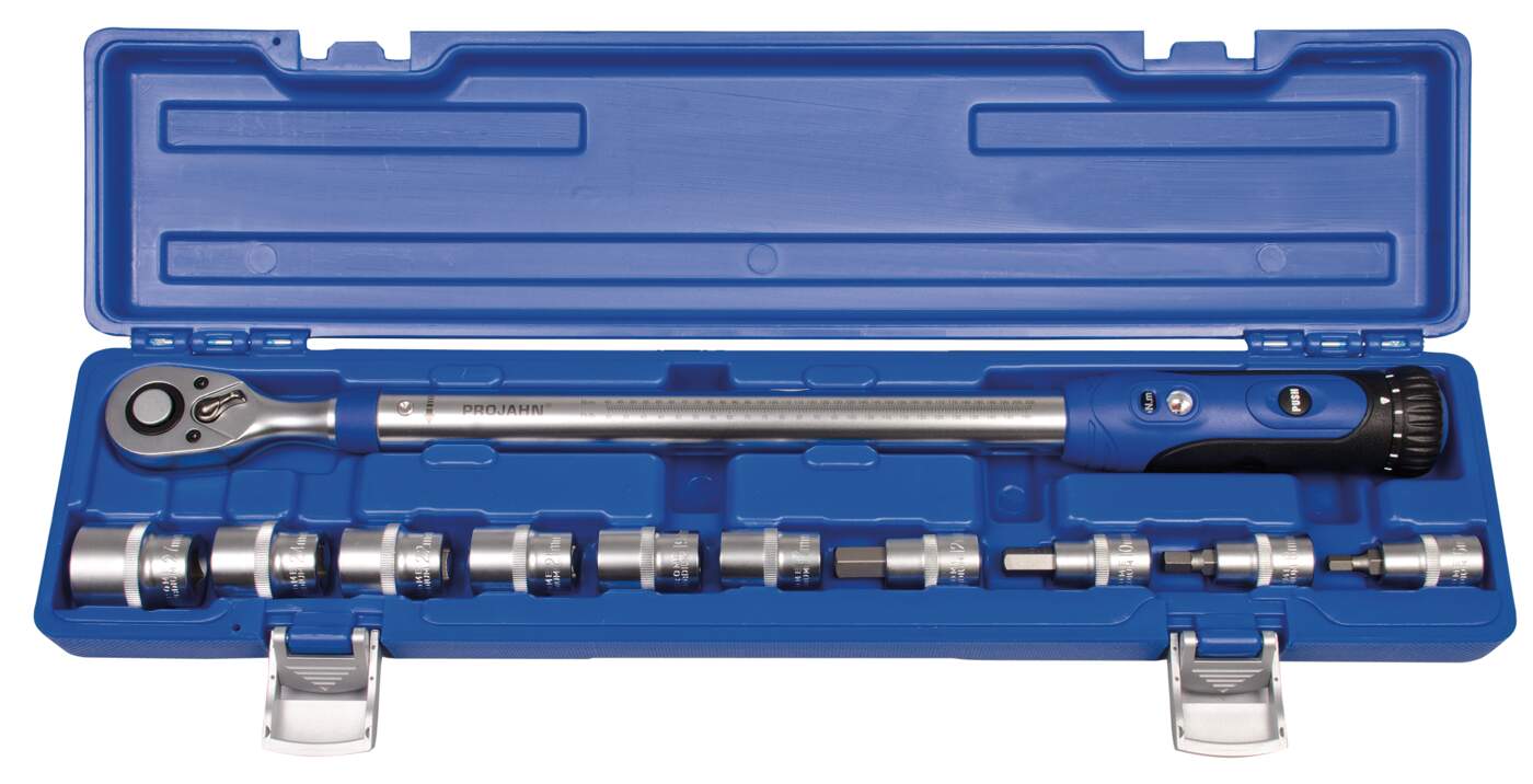 1/2″ Drehmomentschlüssel-Set, 11-teilig TORQUE-PROFI 200 + Stecknusseinsätze Bereich: 40-200 Nm Toleranz: 4%