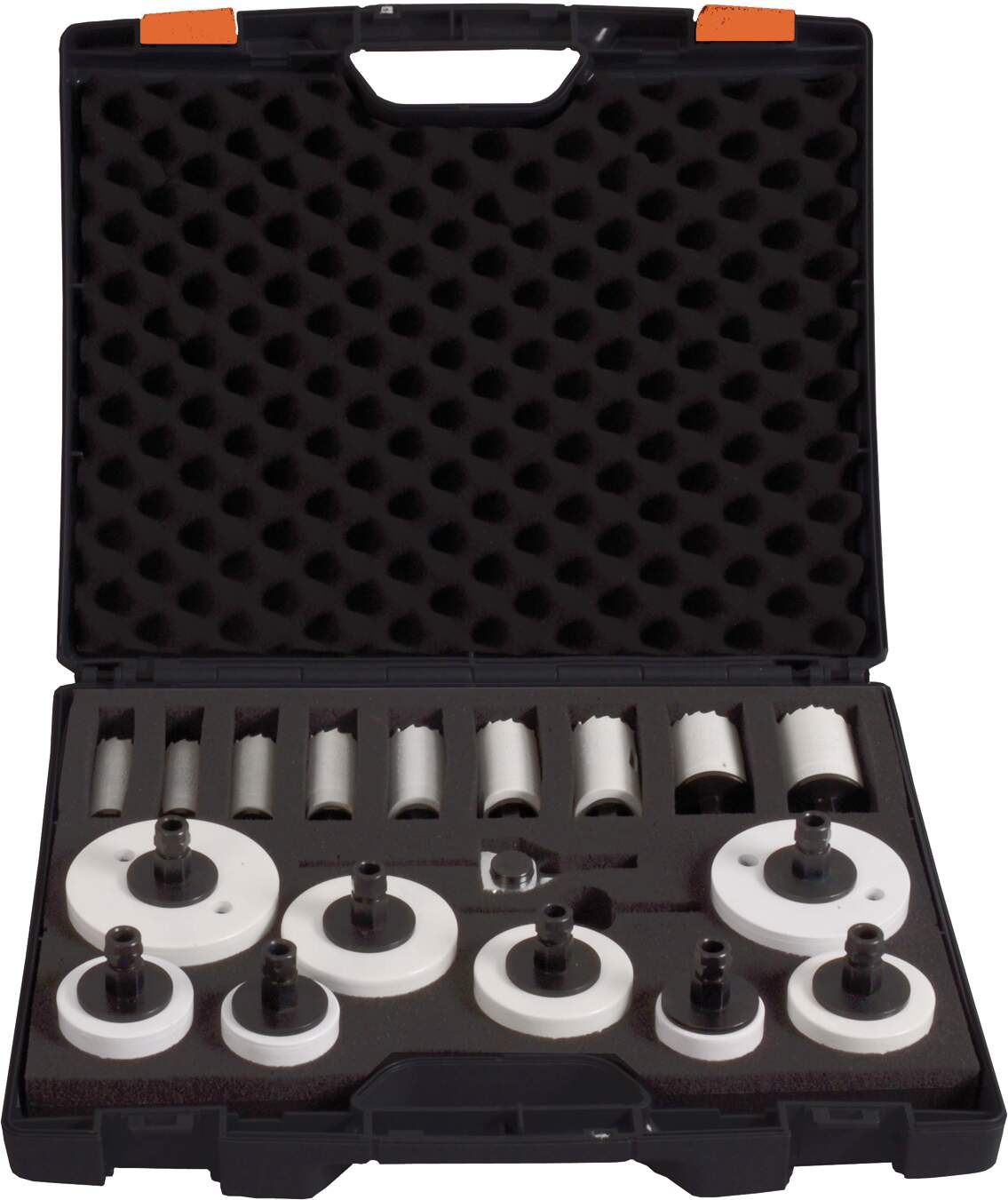 BiMetall Lochsägen-Koffer „Universal“ 18 tlg. 17 an der Lochsäge vormontierte Verbindungsstücke, inkl. 1 x Schnellwechsel-Adapter