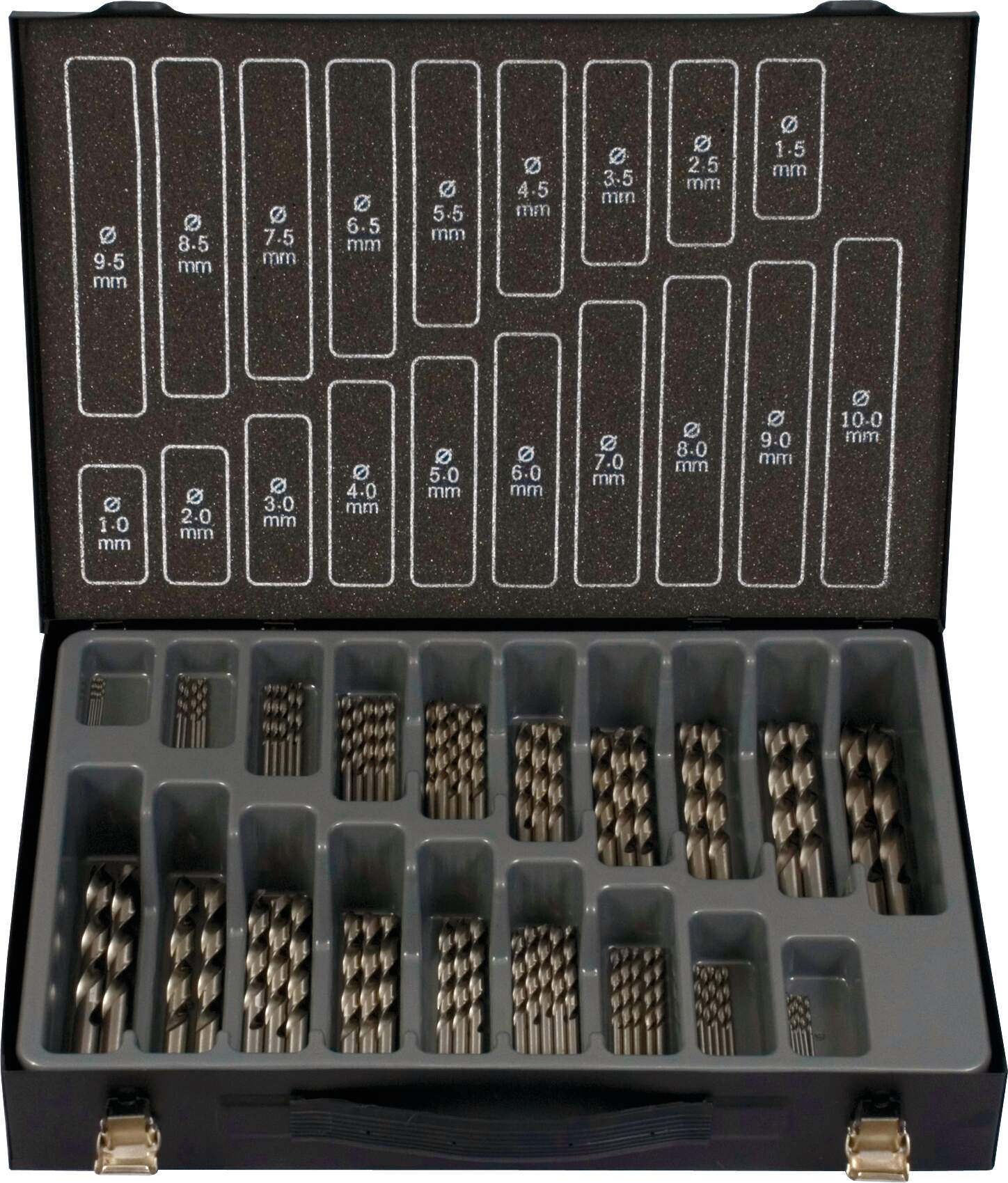 Bohrer-Magazin HSS-Co ECO 70tlg bestehend aus: je 5 Stück: 1,0 – 5,0 mm je 3 Stück: 5,5 – 7,5 mm je 2 Stück 8,0 – 10,0 mm