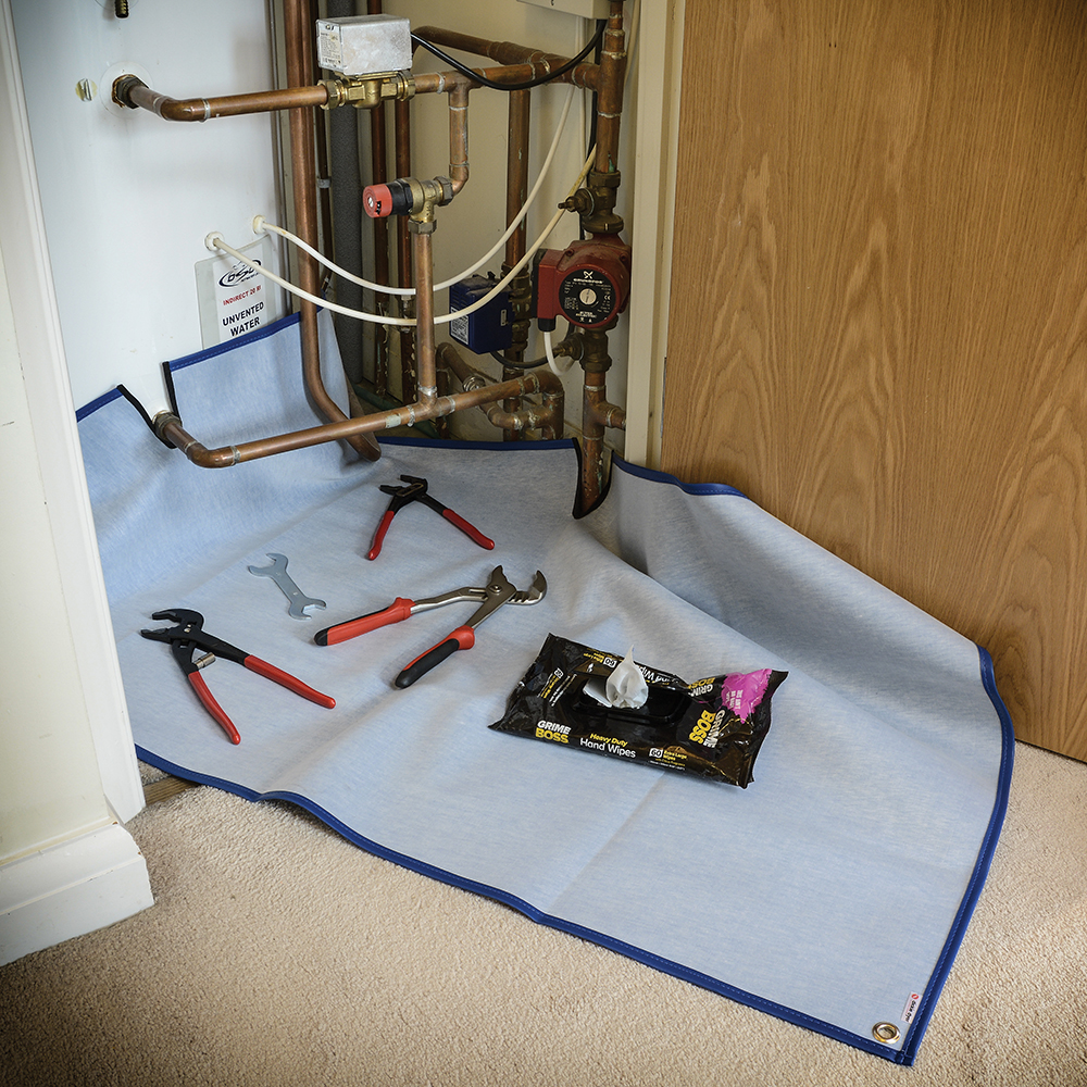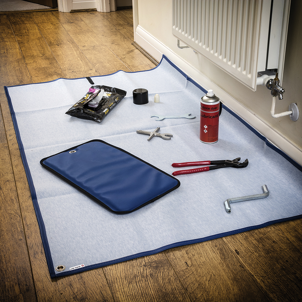 Strapazierfähige, schmutzresistente, einfach per Wischreinigung zu säubernde Schutzmatte. Saugfähige, schnell trocknende Beschichtung. Wasserfeste Rückseite. Für Heimwerker und Profis.