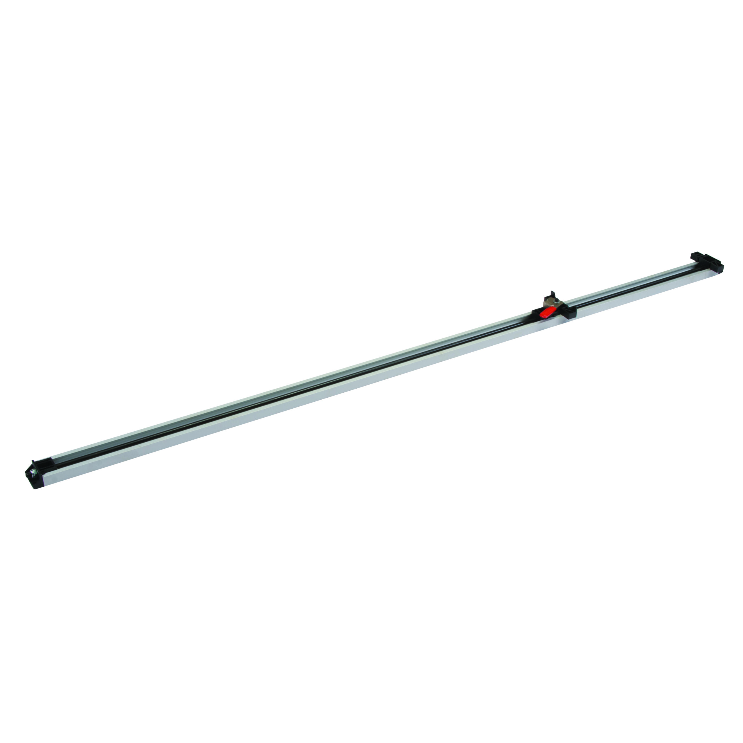 Doppelfunktions-Führungs- und Anschlagschiene. Kann auf Bretter aufgespannt werden, um einen konstanten Anschlag zur Stichsägen-, Oberfräsen- und Kreissägenführung zu erhalten. Findet auch Verwendung beim Kleben von mehreren Paneelen unter leichtem Druck. Schienen lassen sich auch Rücken an Rücken auf einem Werktisch befestigen, um handfrei zu arbeiten.
