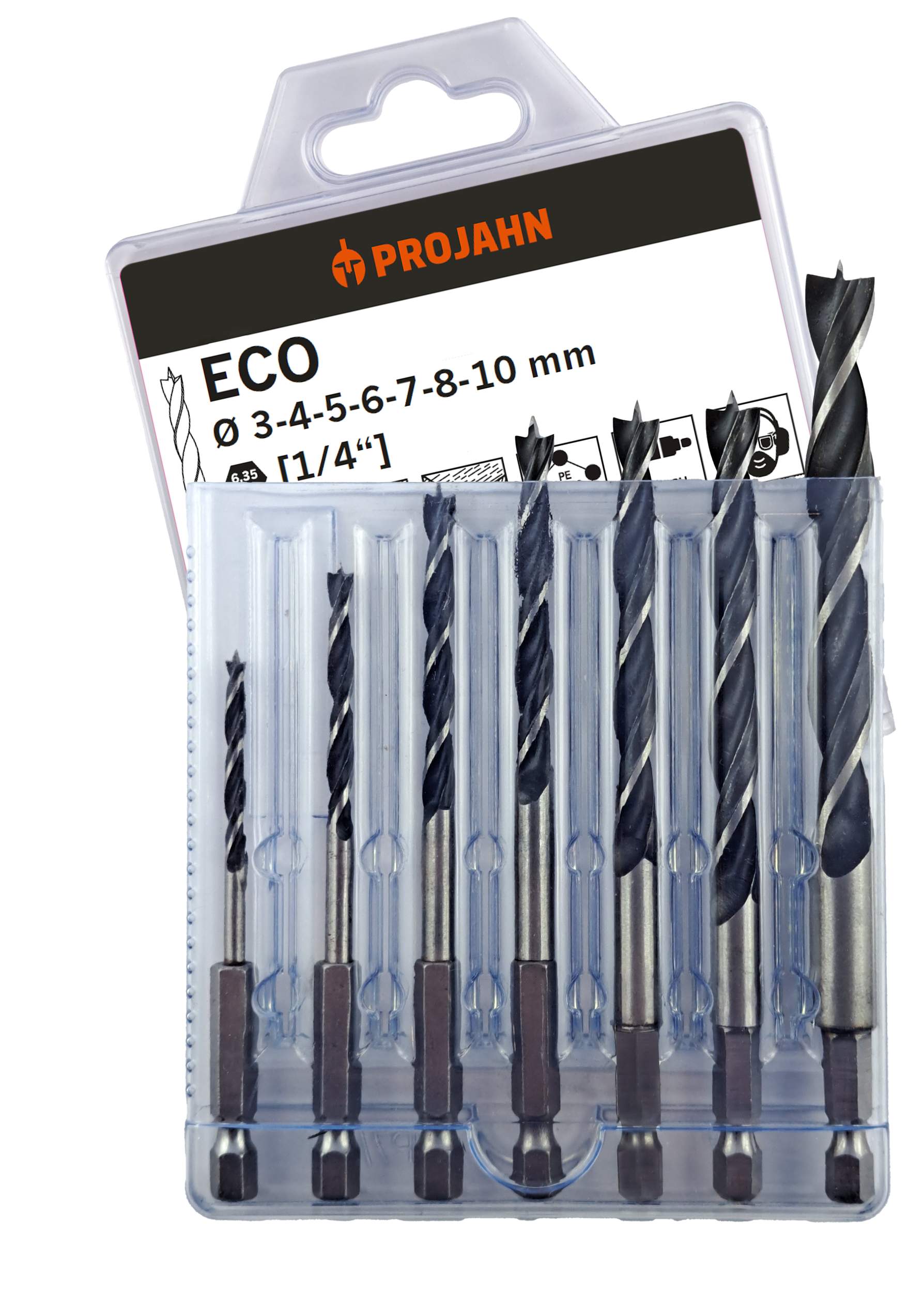 Holzspiralbohrer ECO set 7-tlg. mit 6,35 mm [1/4″] 6-kant Aufnahme