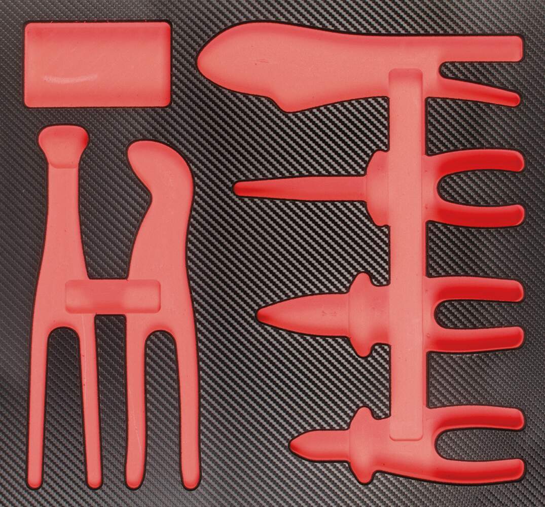 • 6-tlg. Werkstattwagen-Einlage mit den gebräuchlichsten Zangen erweitert um eine Flechter- und Gripzange