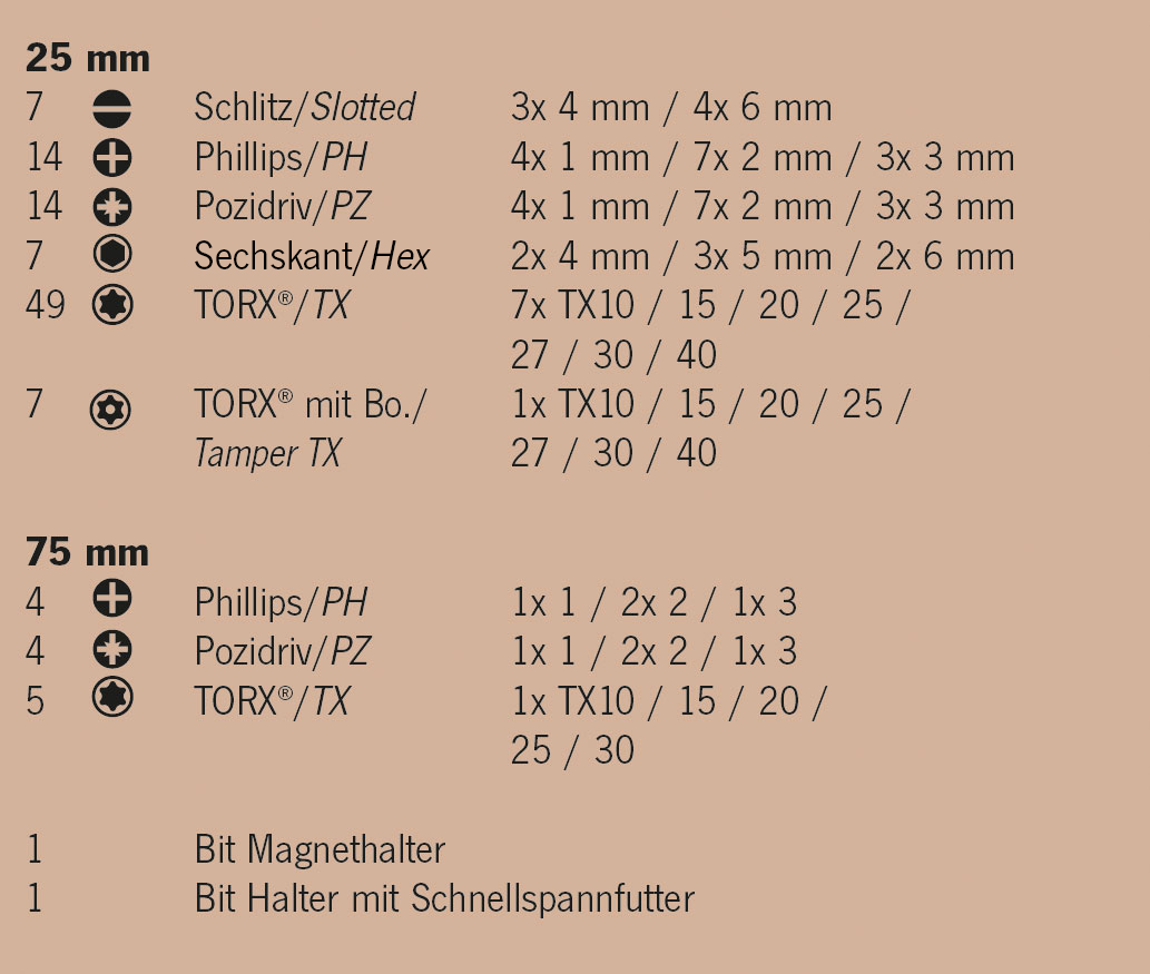 - Umfangreiche Bit-Bestückung – Immer den richtigen Bit