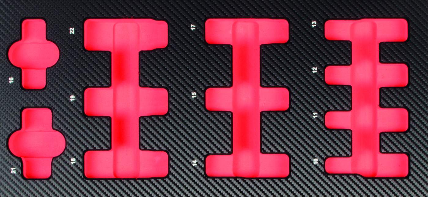 • 12-tlg. Werkstattwagen-Einlage mit metrischen Steckschlüsselwerkzeugen 12,5 [1/2″] nach DIN 3120 / ISO 1174
