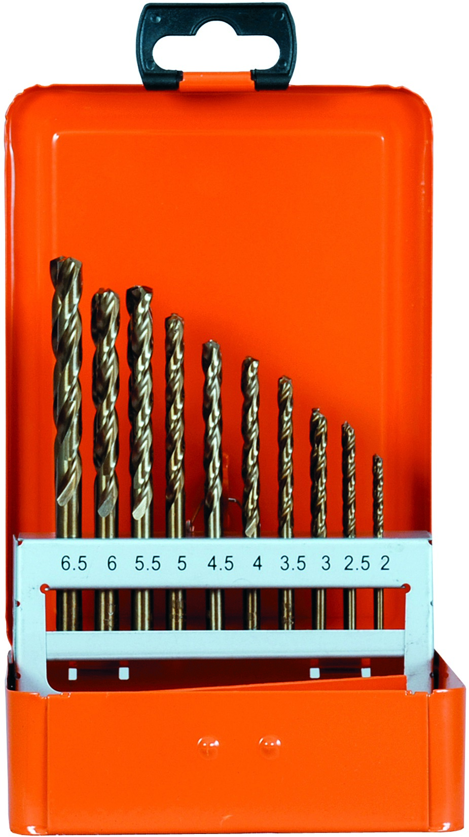 Kassette 1plus DIN 338 HSS-Co 5 % 36 tlg je 5 Stück: 2 – 2,5 – 3 – 3,5 mm je 3 Stück: 4 – 4,5 – 5 – 5,5 mm je 2 Stück: 6 – 6,5 mm