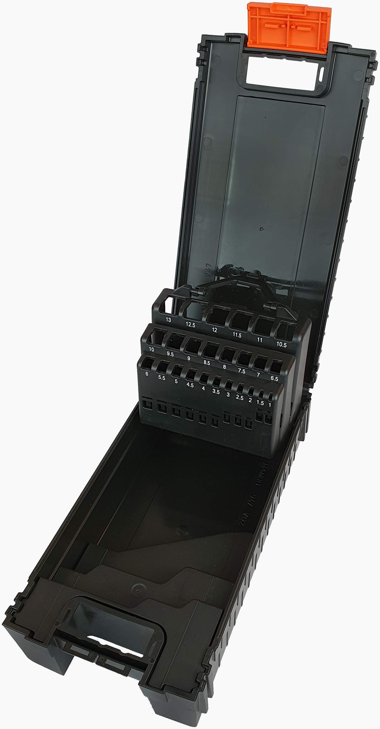 Leerkassette 25-teiligen Bohrer-Satz 947 schwarz VS reinorange (RAL2004) Außenmaße: 112x217x62mm