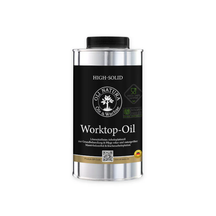 Das lösemittelfreie OLI-NATURA Worktop-Oil ist die erste Wahl für Tischmanufakturen, Schreiner sowie das Holz- und Epoxidharzhandwerk, wenn es um höchste Qualität und langlebigen Schutz für stark beanspruchte Arbeitsplatten, Tische oder Holz-Waschtische geht. Der High-Solid-Blend aus Leinöl und Tungöl macht das Holz besonders widerstandsfähig und wasserabweisend.
