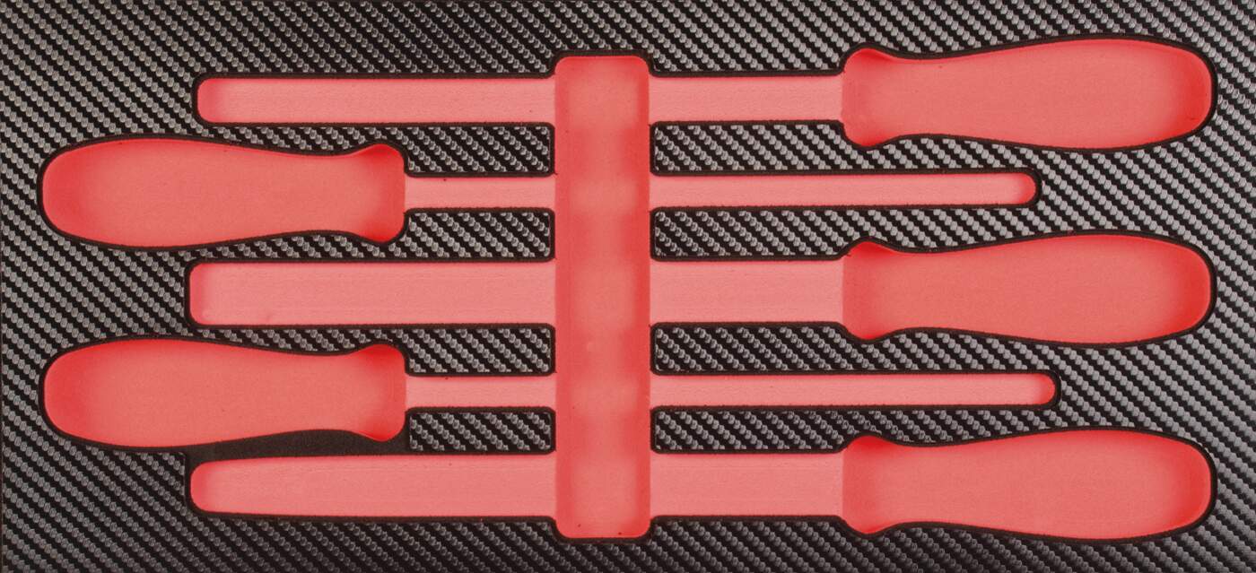 • 5-tlg. Werkstattwagen-Einlage mit den wichtigsten Feilen (Hieb 2) zur Metallbearbeitung