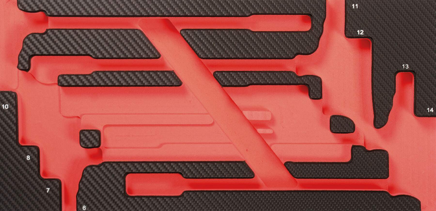 • Aus widerstandsfähigem EVA Polymerschaum mit stabiler Kunststoffoberfläche in hochwertigem Carbonfinish