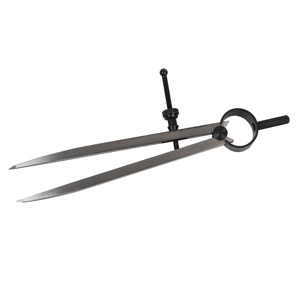Kohlenstoffstahl. Gehärtete, geschliffene Spitzen. Schenkel drehen sich auf einer Achse und werden per Bügelfeder gespannt. Schnelle Einstellung mit geteilter Mutter. 202 mm Länge.